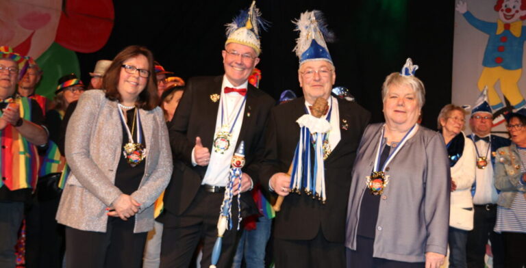Besonders freuten sich die Westumer über die anwesenden Jubilare, die ebenfalls an diesem Abend geehrt wurden. So erhielten Hansi und Rita Wiese für ihr 25-jähriges Saalprinzen-Jubiläum sowie der anwesende Marcel Schnückler für sein 25-jähriges Kinderprinzen-Jubiläum jeweils einen Orden. Ebenfalls ausgezeichnet wurden Stefan und Christel Albers, die vor 40 Jahren das Zepter über die Westumer Narrenschar schwangen, sowie Nicole Möller, die vor 40 Jahren Kinderprinzessin war.